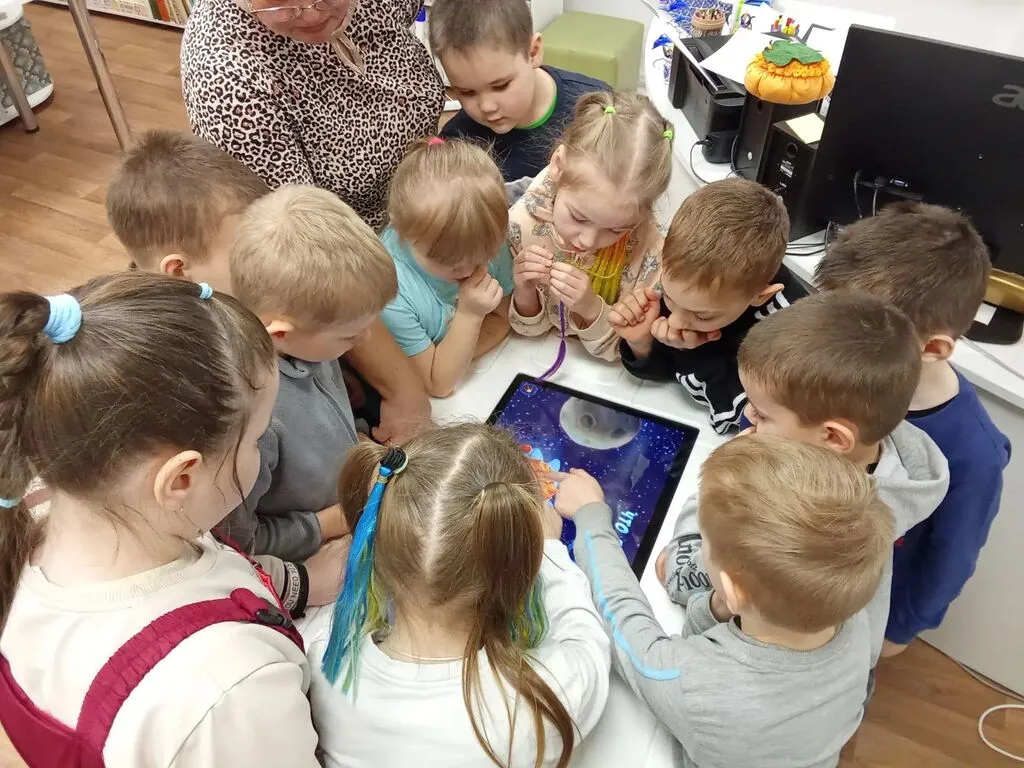 Понравилось также ребятам играть в настольные игры на интерактивном комплексе «Алма» с космическими персонажами, а именно «Космический мусор» и «Ближе-дальше».