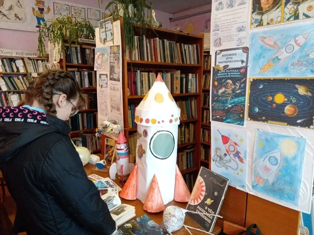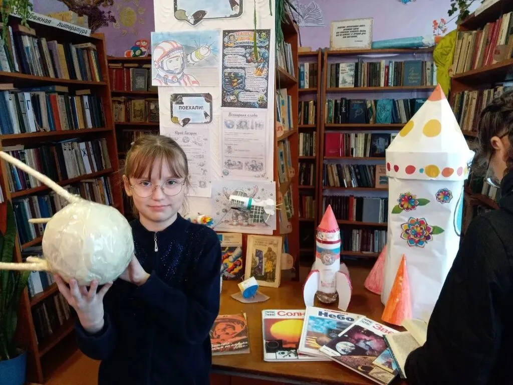 В начале игры-викторины дети прослушали информацию о первом полете человека в космос, узнали много интересного из жизни Ю. А. Гагарина, как проходит подготовка к полетам человека в космос, какие навыки и умения нужны для того, чтобы дети увлеченно участвовали в викторине, успешно отвечая на вопросы о первом полете человека в космос, о Солнечной системе, о загадочных звездах и далеких планетах. Ребята не только отвечали на вопросы, но и в игровой форме узнавали интересные факты о космосе. Все отлично справились с заданиями, проявив смекалку и эрудицию, а после викторины самые юные читатели с удовольствием приняли участие в создании макета ракеты.