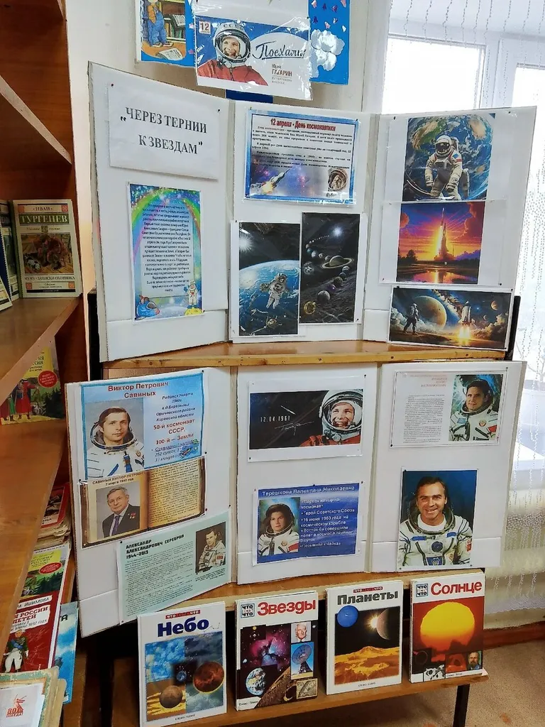 В Городищенской сельской библиотеке проходит иллюстрированная фотовыставка - обзор космонавтов. Первых космонавтов покоривших космос, космонавтов-земляков, космонавтов, которые вышли первыми в открытый космос. Чтобы летать в космос, надо много знать. Надо усердно учиться. Надо научиться управлять ракетой, надо изучать звёздное небо.