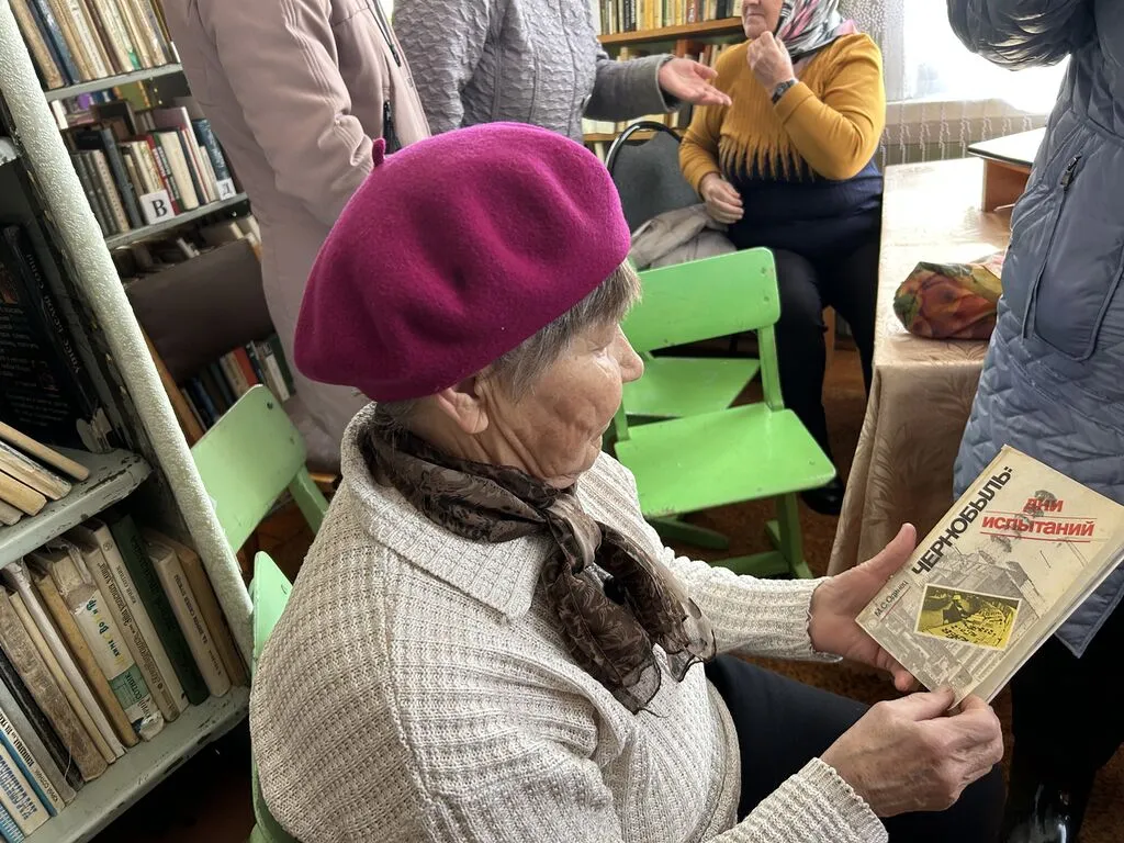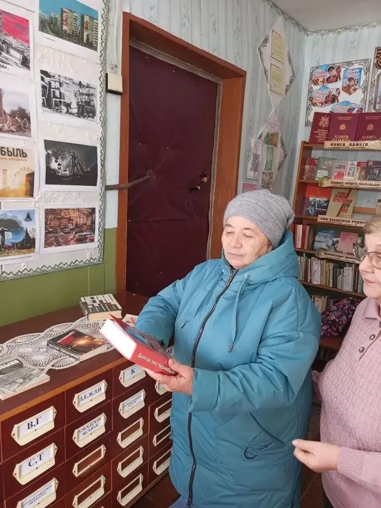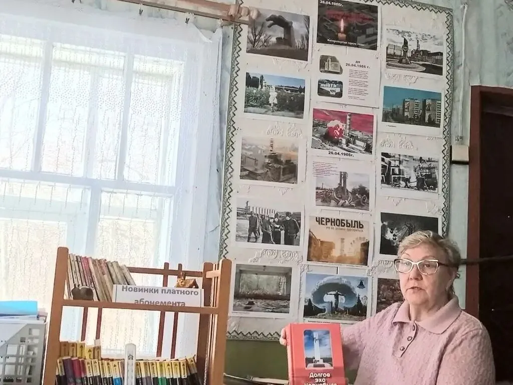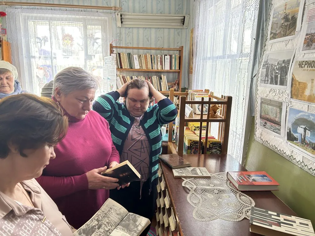 Рассказ сопровождался обзором книжно-иллюстративной выставки «Долгое эхо Чернобыля». На стенде присутствующие увидели фотографии до аварии и после нее. Также Валентина Васильевна порекомендовала прочитать книги о Чернобыльской аварии, тем, кого заинтересовала эта тема.
